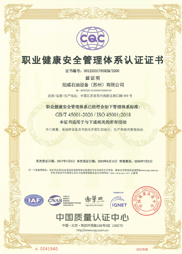 油管頭PR2F 證書